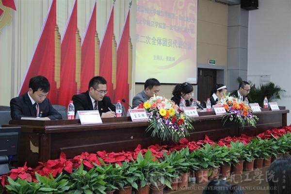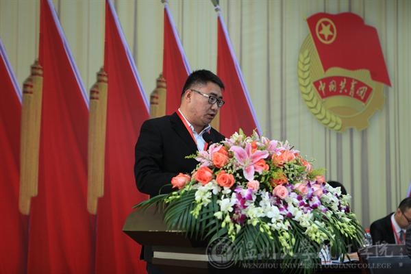 最后,由院党委副书记高红星讲话。他对历年来我院团学组织一直以来做好党的得力助手和接班人,努力提高团员青年政治思想素质,引导团员青年成长和成才,为学院的稳定和发展等方面所做出的突出贡献表示肯定和感谢,并代表温州大学瓯江学院党委向大会致以热烈祝贺。同时,也代表学院党委对广大团员青年提出了几点希望和要求:一是不断增强新形式下共青团工作的责任感和使命感;二是充分发挥团学组织在学院建设和社会发展中的作用;三是牢固树立服务意识,竭诚为广大青年学生服务;四是加强自身建设,为共青团事业发展奠定坚实基础。